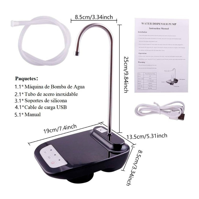 A mí me pasaba todo el tiempo. Entre lo pesado que es el botellón, lo incómodo que es alinear la boquilla con el vaso y el riesgo constante de derrame… ya prefería seguir con sed. Hasta que conocí esta bomba dispensadora. Pequeña, recargable, sin esfuerzo, y lo mejor: solo aprietas un botón y el agua sale. Literalmente me siento en un hotel, con vaso servido y manos libres.